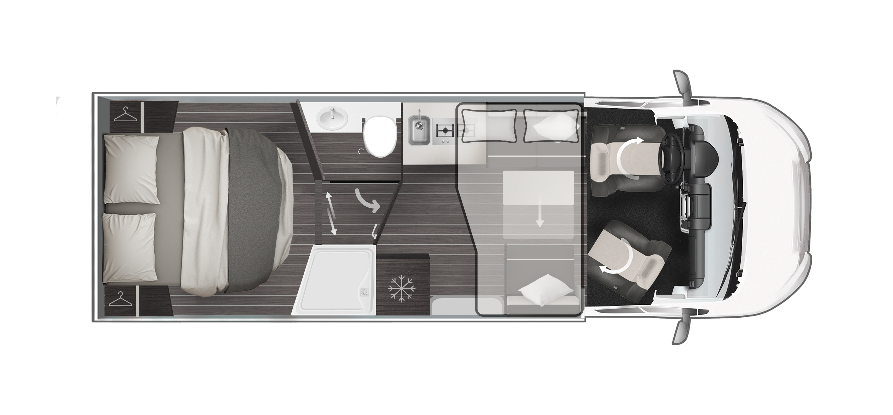 - Cajones en camas gemelas / isla (excepto mod. 295TL – 266P – 266TL)