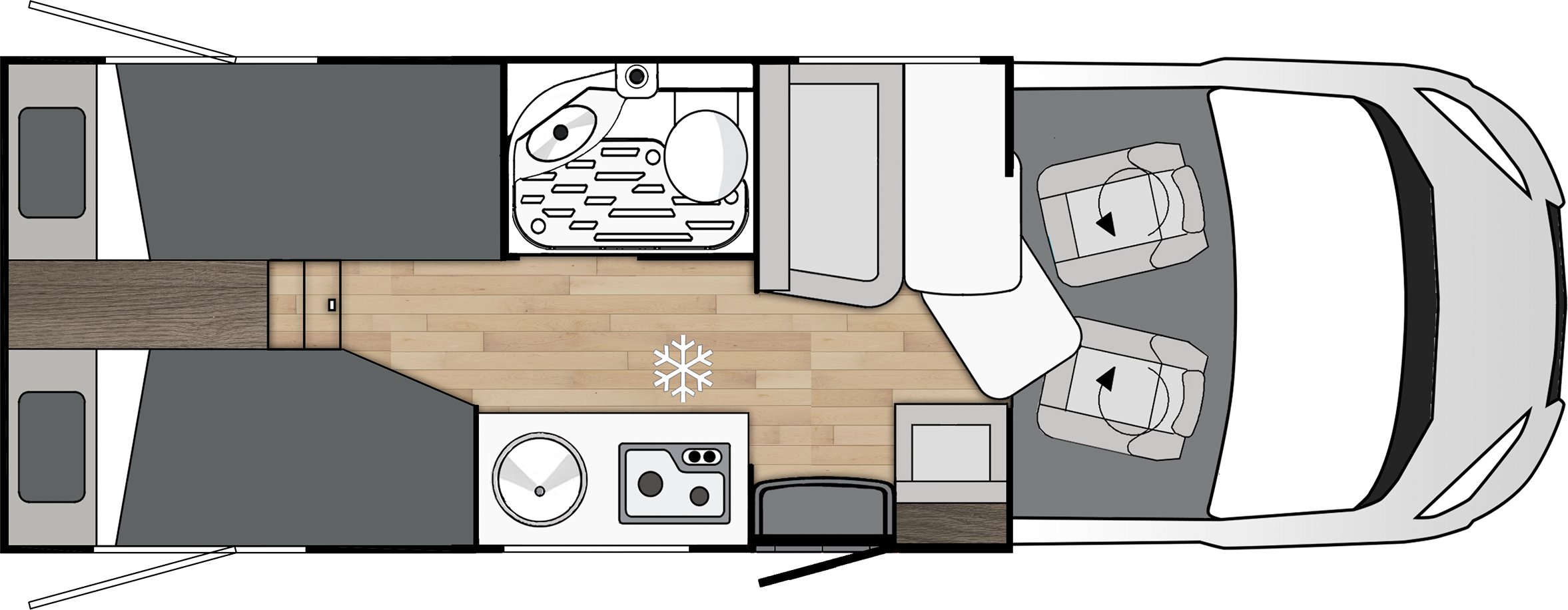 - Claraboya panorámica practicable en cabina (71x105 cm) con mosquitera y oscurecedor