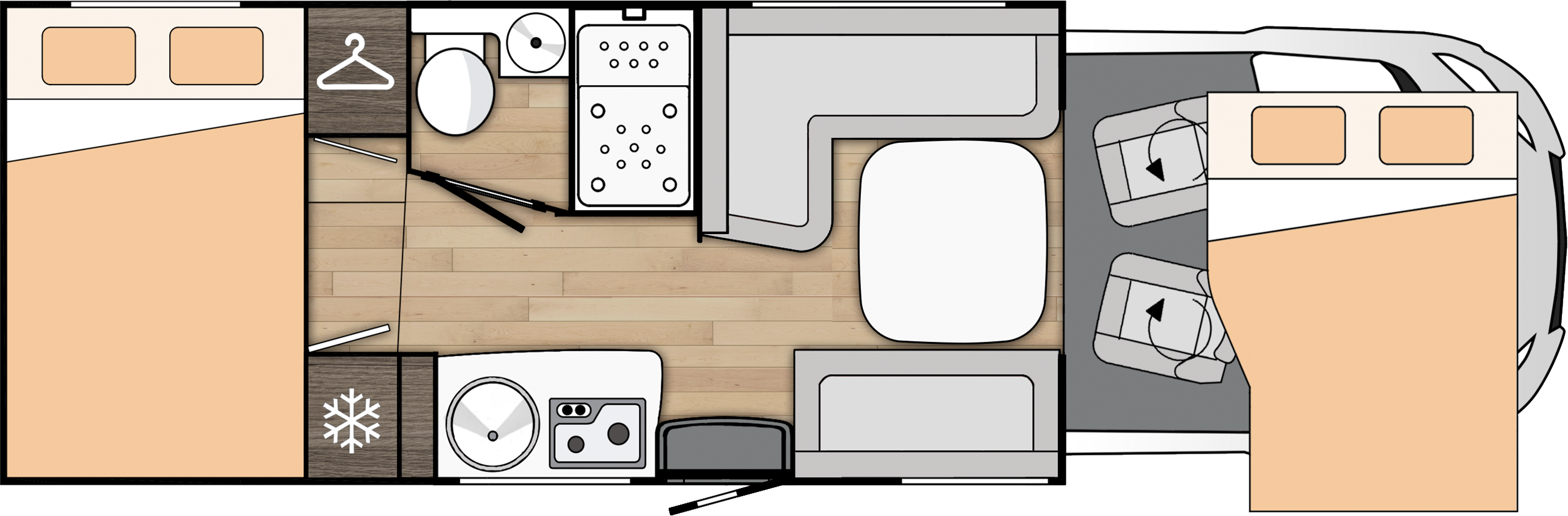- Claraboya panorámica practicable en cabina (71x105 cm) con mosquitera y oscurecedor