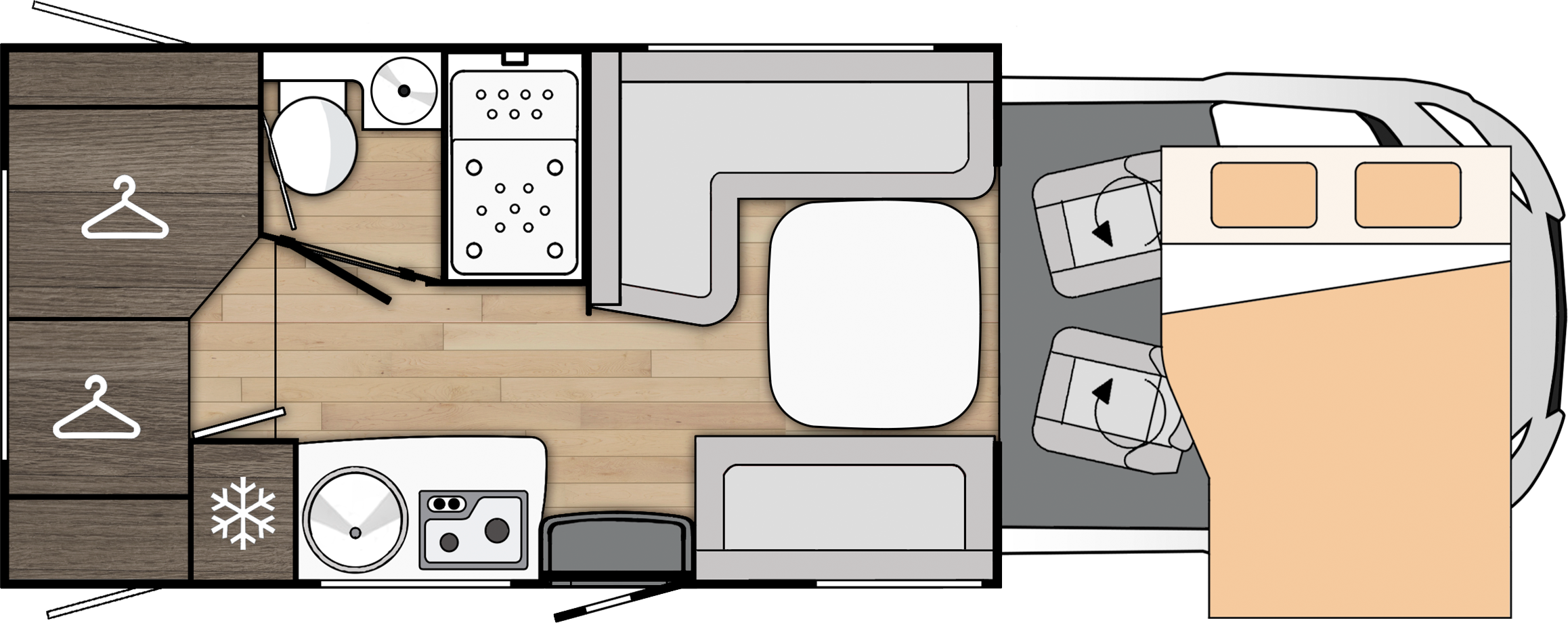 - Claraboya panorámica practicable en cabina (71x105 cm) con mosquitera y oscurecedor