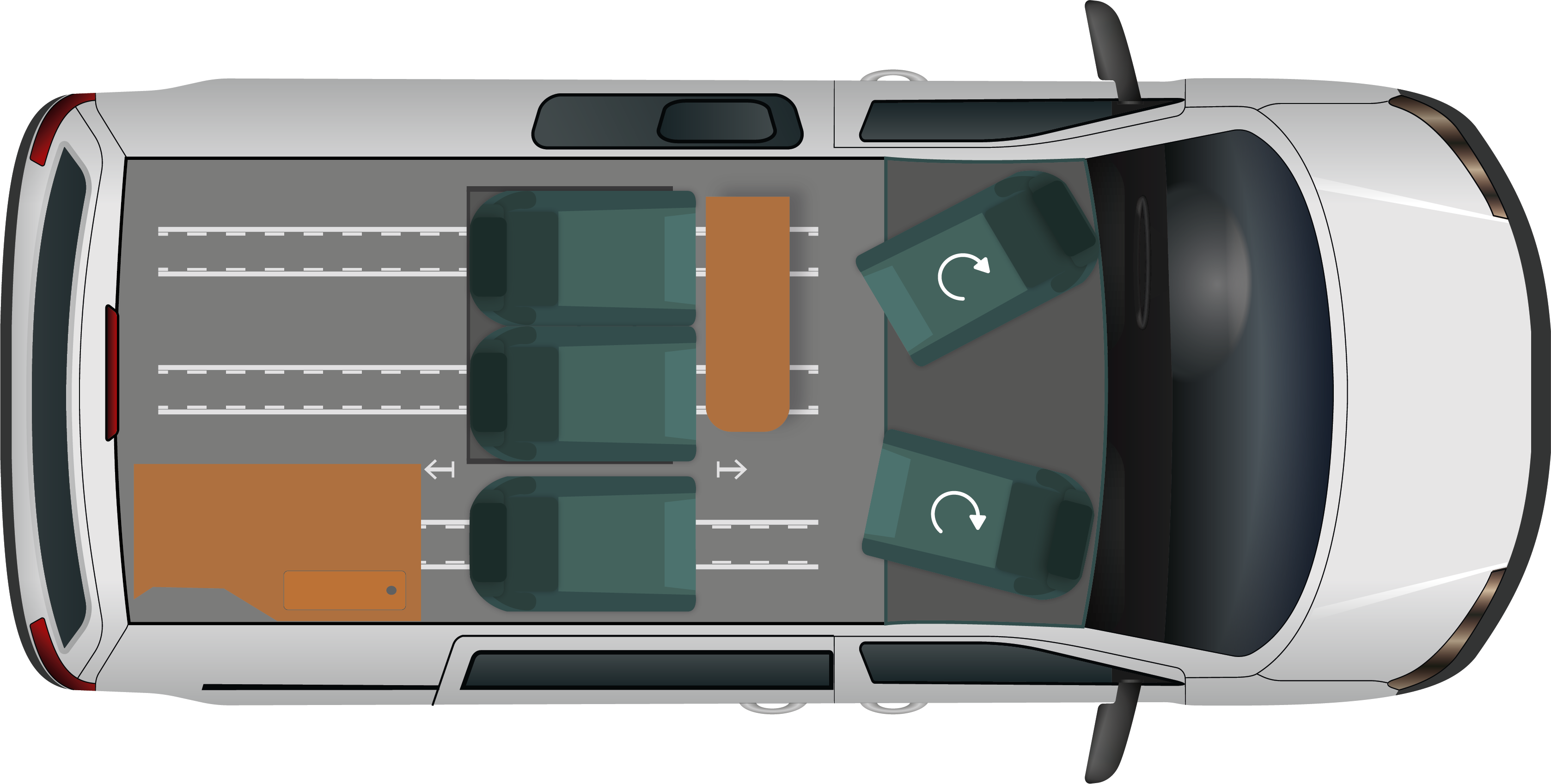 - Asientos delanteros calefactables y giratorios
